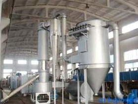 流化床干燥機是由物料自進料進口進入機內,在振動力作用下,物料沿水平面流化床拋擲,向前連續運動,熱風向上穿過流化床同濕物料換熱后,濕空氣經旋風